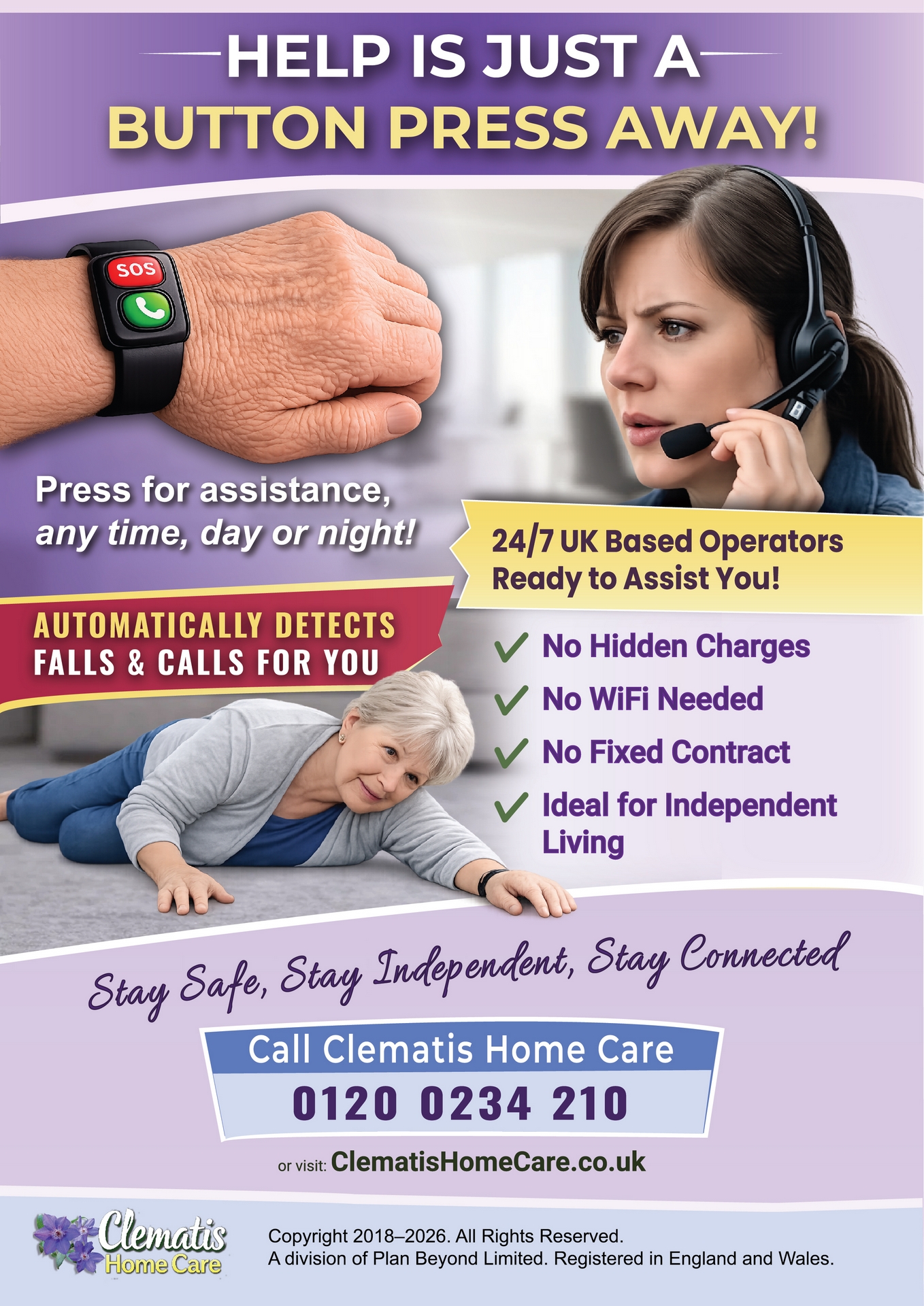 The 24/7 Help Line service is an optional extra for a little over £1.00 per day, Contact Clematis Home Care for further details. Either complete the details below or call 0120 0234 210
