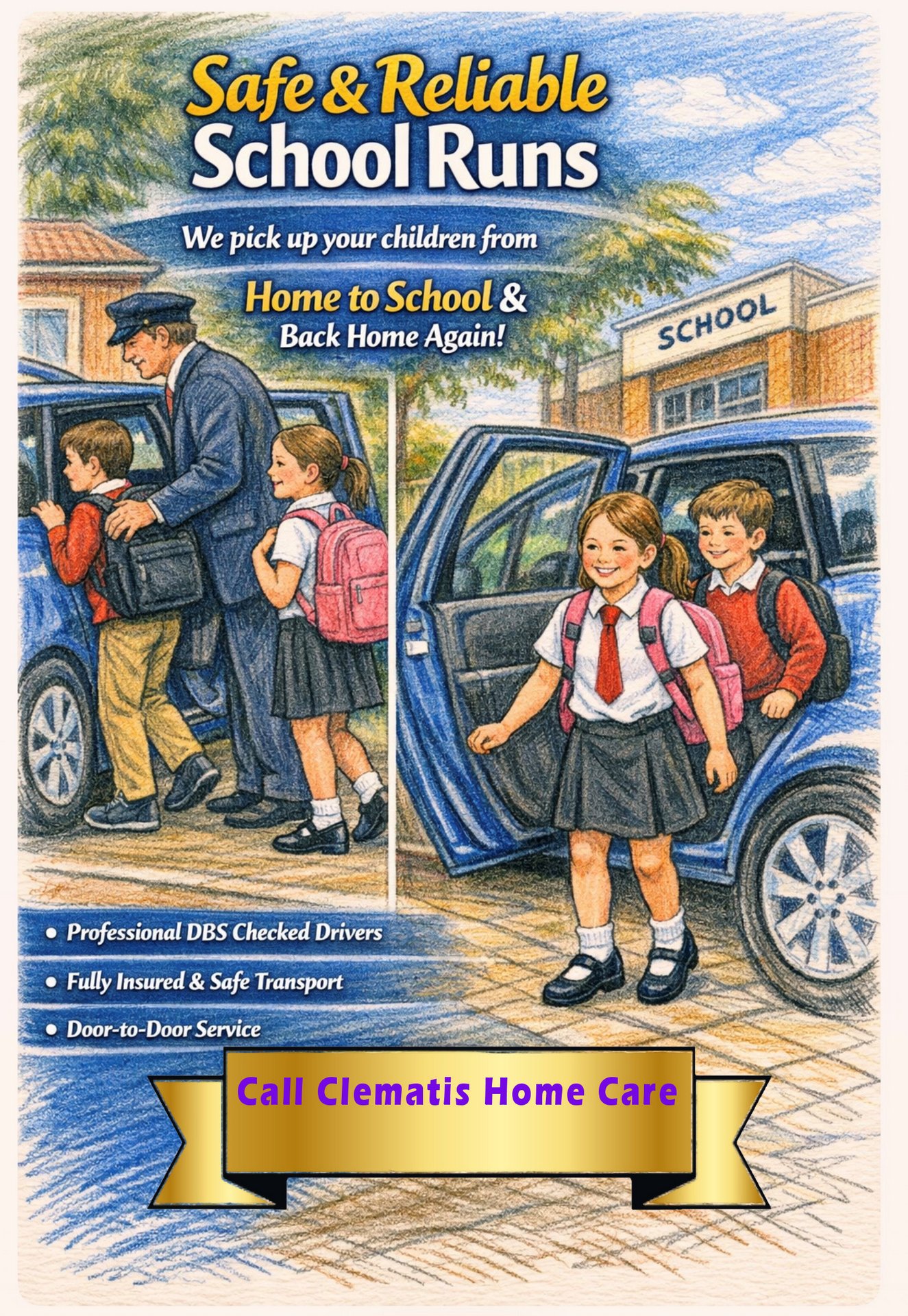 To reassure you that your child has got to school safely, our drivers will contact you confirm when they have arrived at the school and watched you child walk through the gates.